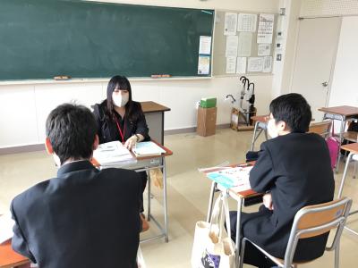就職ガイダンスには80名ほど、進学ガイダンスには30名ほどの保護者が参加され、熱心に耳を傾けていました。その後、3年生の教室にて担任との懇談をされる保護者もいらっしゃいました。