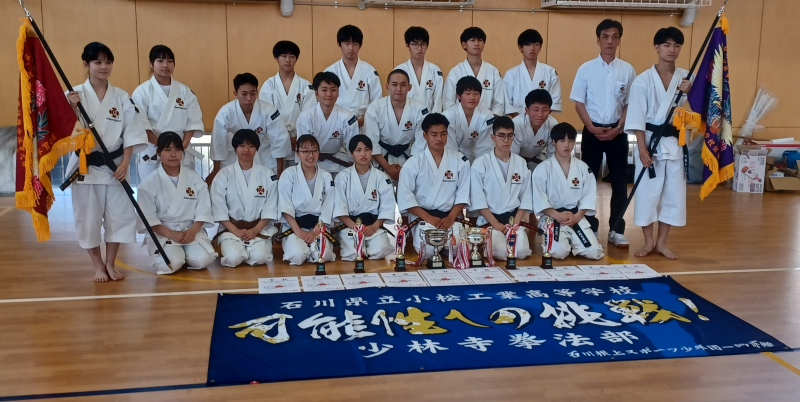 令和7年度石川県高校総合体育大会少林寺拳法競技 第19回石川県高校少林寺拳法大会が6月6日~7日の2日間 根上勤労者体育センターで開催された。本校少林寺拳法部も出場し、とくに1年生にとっては初めての大会となった。大会テーマは「 こじ開けろ 可能性の扉 」