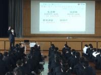 7月12日(火)の6限目に、本校の第一体育館に(株)ベネッセコーポレーションの穐本峻也様をお招きし、1年生に向けた進路ガイダンスが行われました。詳細は、進路情報のページをご覧ください。