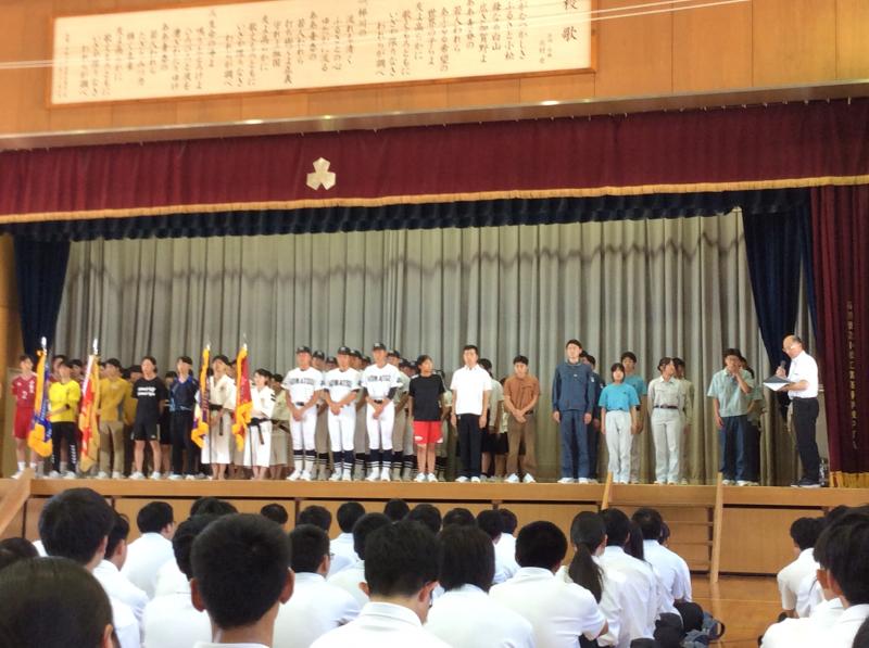 続いて、全国大会、北信越大会、野球部、吹奏楽部、ものづくりコンテストにむけての壮行式が行われました。