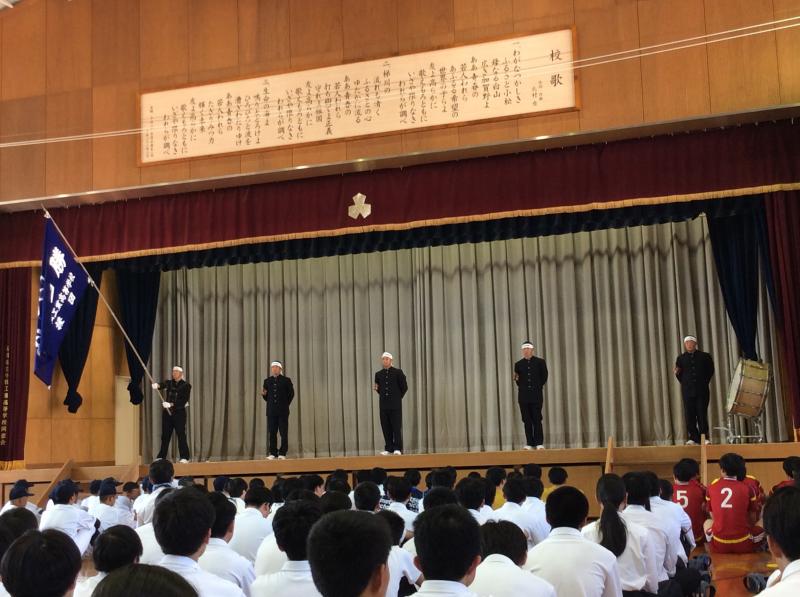 出場する部活の皆さんが大会に向けての抱負を述べ、校長先生、応援団からの応援で健闘を祈りました。