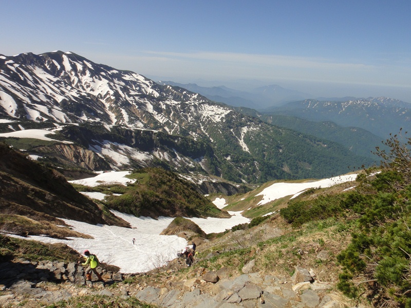 遠くに人が集まっている場所は白石平。自分たちのようにこれが最後の高校生登山という人も大勢います。記念写真でも撮っているのでしょう。