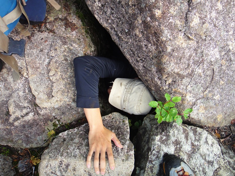 休憩中。岩の中に潜って遊んでいます。さだ〇みたいだと言われました。