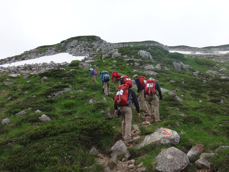 大会二日目。この日より登山行動開始。この日は乗鞍岳コースでルールはチーム行動。