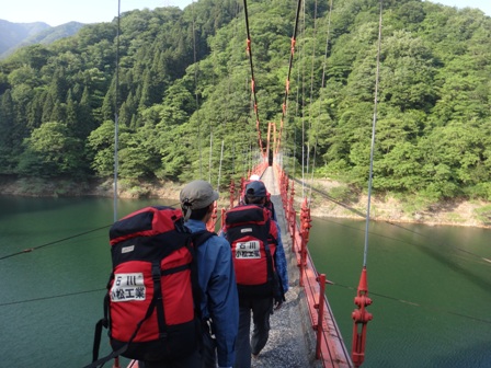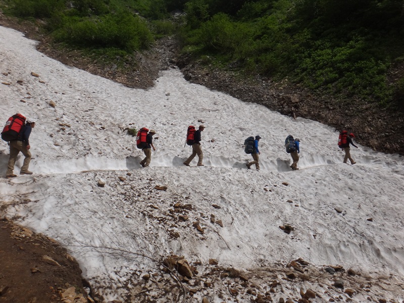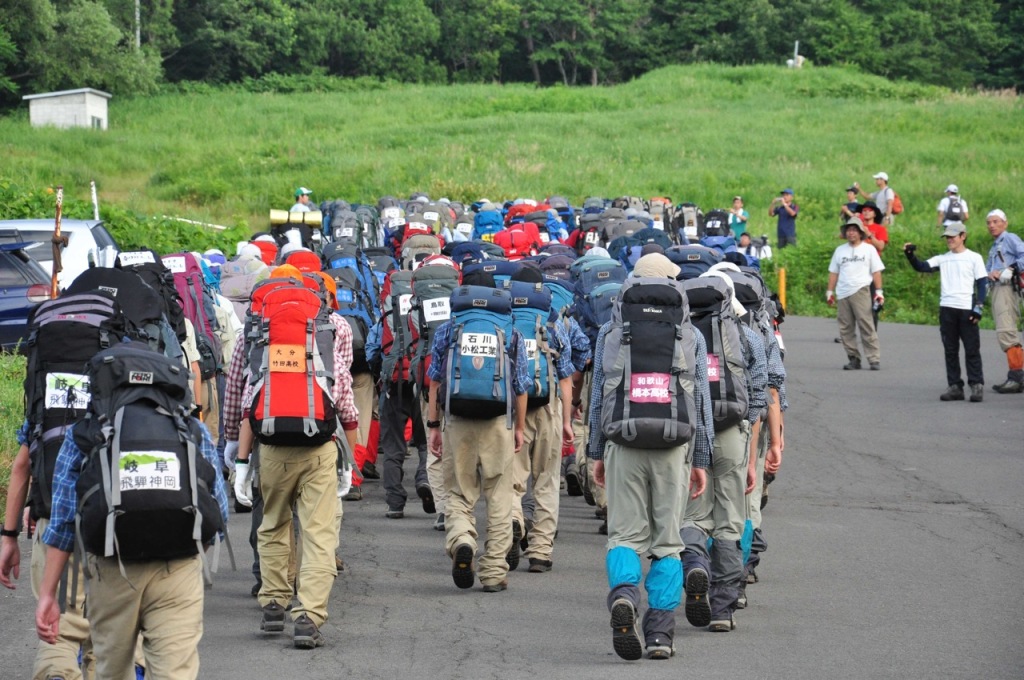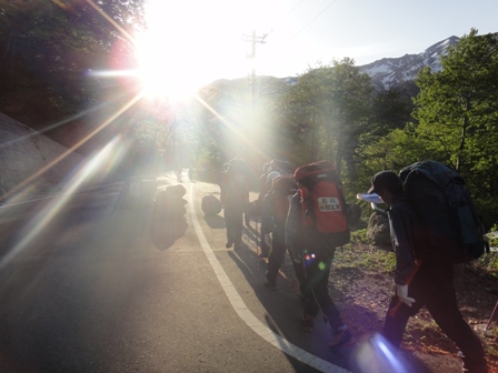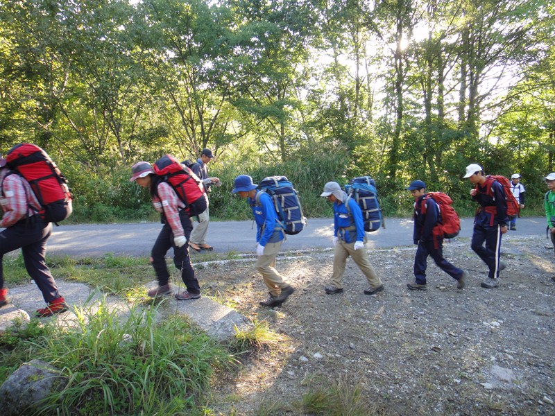 一晩泊まってさぁ登山活動開始。今大会では岐阜県の平瀬道から登ります。