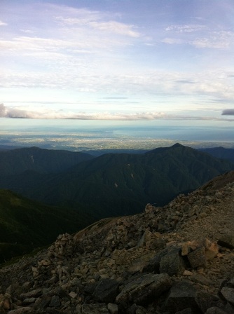 テント場からの景色です。テントを張りつつ一服してから頂上を目指します。