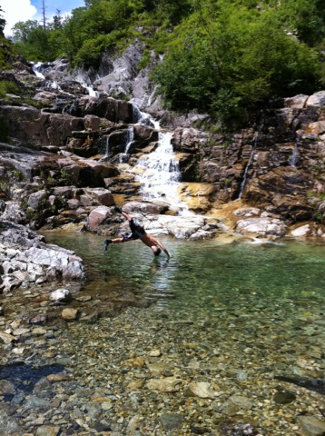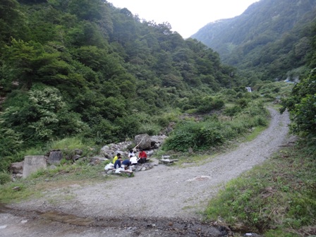 長い長い道のりを4時間ほど歩きやっとテント場に到着。ただしここはまだ中間ぐらい、気を抜くな。