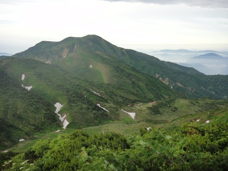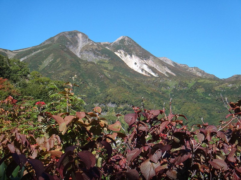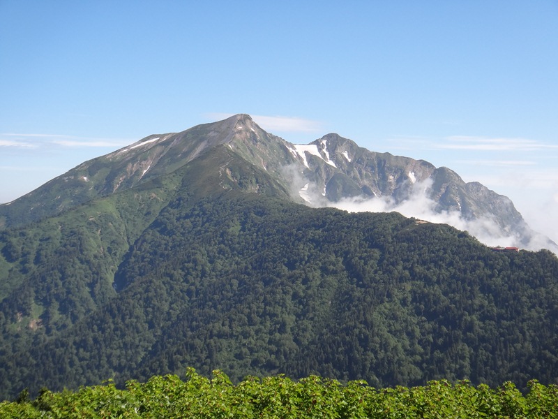 前に見えるきれいな形の山は左から御前ヶ峰と剣ヶ峰です。