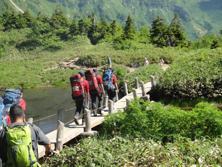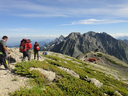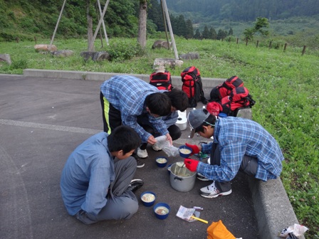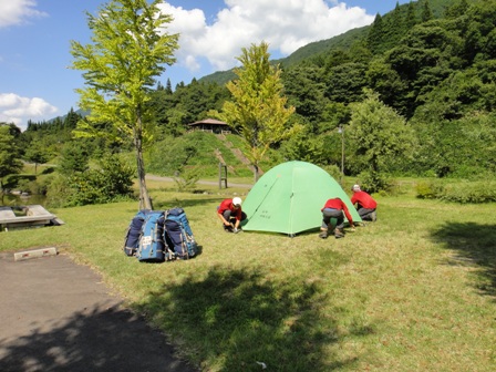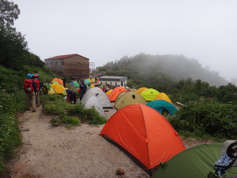 テント場にもどると来た時よりもテントで埋まっていました。ここで泊って次の日に登山口まで帰ります。今回誰もが「今までで最もスリルのある登山だった」と言っていました。