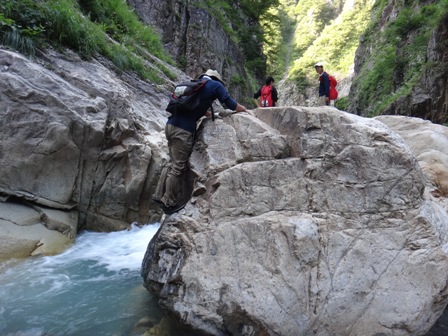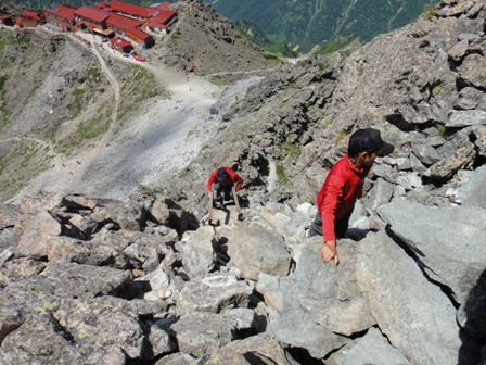当然ながら来た道を戻ります。下りるほうが難しいので先生が先に行き下から撮った写真です。