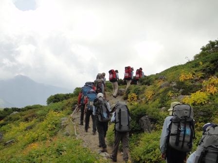 剣ヶ峰から下山。道草食ってたら他校に抜かれました。