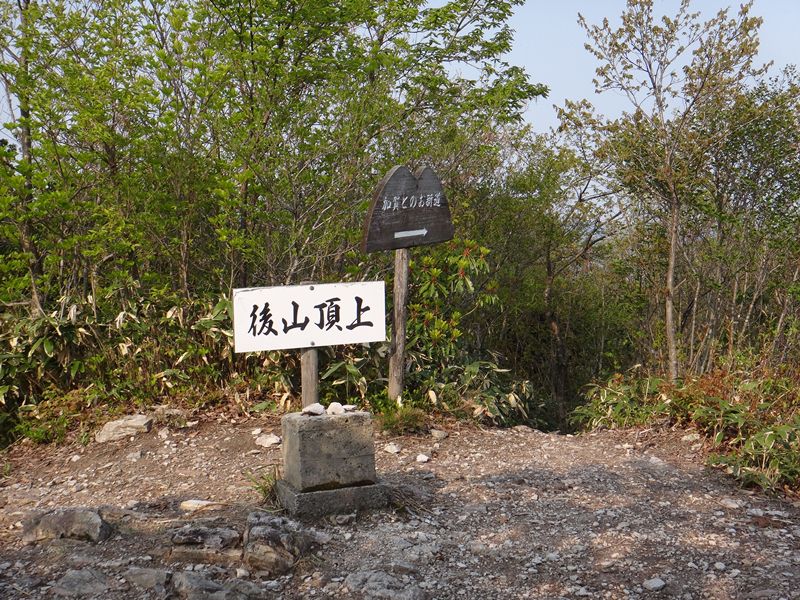 山頂の社です。手前に散らばってる看板を持って記念撮影とかできます。