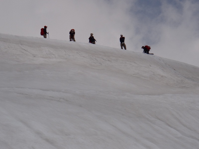 テント場を出発してから傾斜がかなり急になりました。ここからは道も険しくなるので