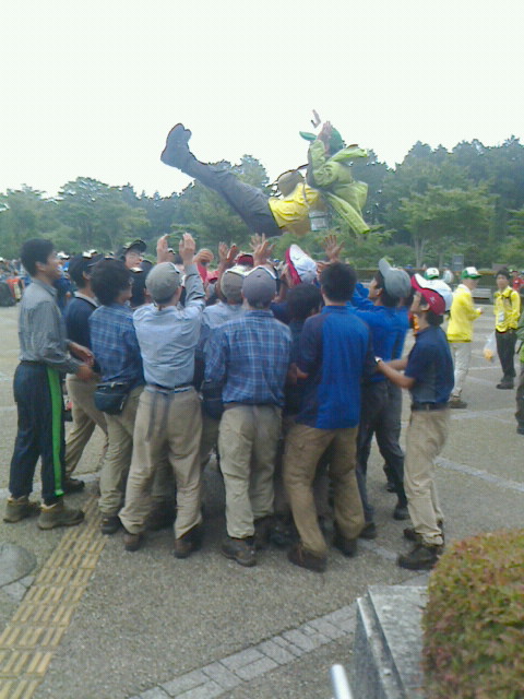 先ほどの部員とは違いますが、登れた部員は喜んでいます。