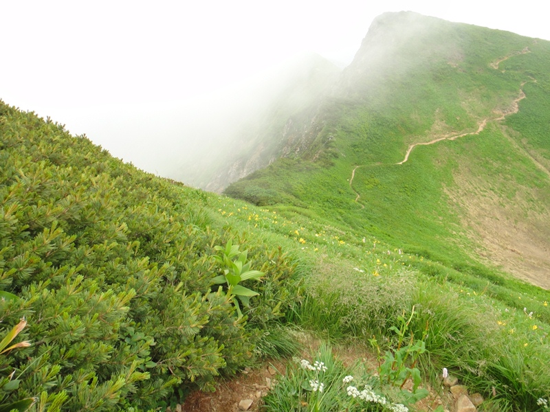 ニッコウキスゲの間を登っていきます絵文字:ちょっと濃い