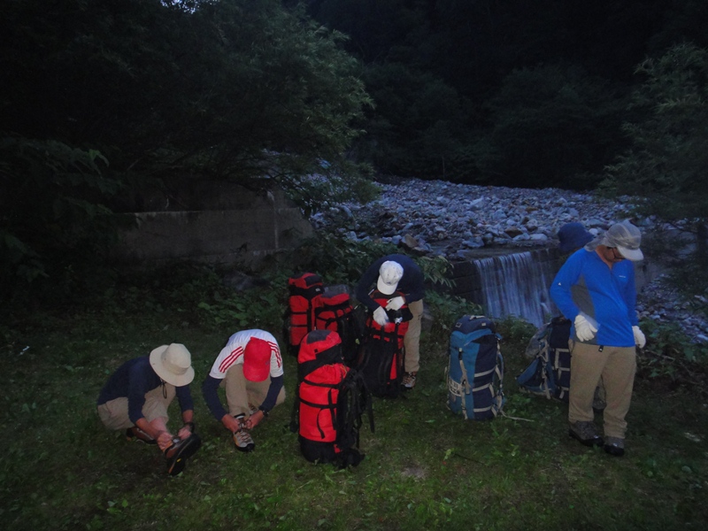 全員の希望もあり今回は剣岳に来ました。距離が長いのでまだ暗いうちから準備をします。