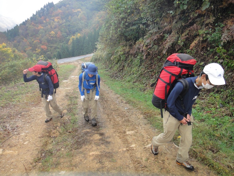 口三方へ行く予定がクマが出て逃げてきました。みんな重い荷物持って走りました。