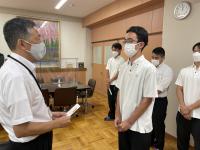 7月13日、校長室にてインターハイ出場選手に対する激励式がありました。島村校長先生の激励の言葉をうけて、生徒達のまなざしは一層強いものになりました。