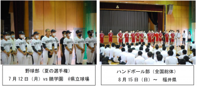 激励式では、代表選手から「石川県の代表として頑張ります」という北信越大会に向けた熱い抱負が語られ、これに対して島村学校長からは「全国大会を目指して頑張ってほしい」という激励の言葉がありました。