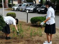 4月21日(水)放課後、今年度初の活動として、前庭の草むしりを行いました。コロナ禍のため、昨年に引き続き外部団体からのボランティア協力依頼は途絶えたままですが、校内で地道に活動しています。