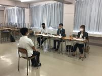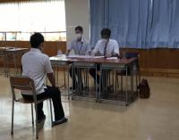 就職志望・進学志望の3年生に対して、本校教員全員による校内模擬面接が行われました。コロナ禍の中、できるだけ密を避け、換気に気を配りながら実施しました。生徒は、緊張感をもち、真剣に面接に臨んでいました。しっかりと面接担当の先生からのアドバイスをメモしながら、自分の面接対応に生かそうと努めている姿が印象的でした。次回は9月9日(木)に外部講師をお招きし、本番直前の模擬面接を実施する予定です。