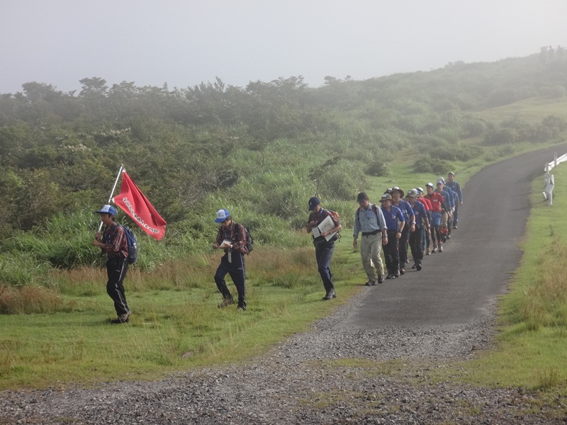 大会2日目に登山活動を行いました。天候は小雨であったものの、選手たちは力強く歩ききってくれました。