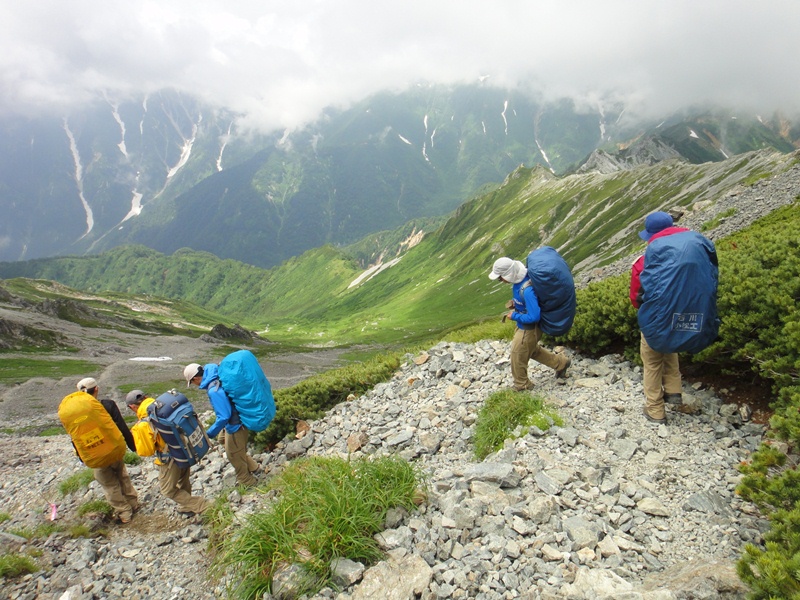 夏山大会に備えて白山合宿に行きました。天候が安定しないため出発を後らせてコースを変更しました。