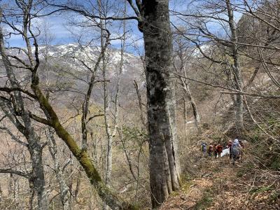 5月3日(水)にチブリ尾根避難小屋を目指しました。天候にめぐまれましたが、1420mを超えたあたりから残雪があり、目標にしていたチブリ尾根避難小屋まで行くことができず、残念でしたが、途中に白山もみえました。