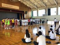 島村校長先生から、感染対策に注意を払いながら、日頃の練習の成果を十分に発揮して上位を目指してほしい、と激励の言葉をいただきました。コロナ禍で、3年生だけが体育館に集合、1・2年生は教室でリモート視聴となりましたが、心は1つ。健闘を期待しています。