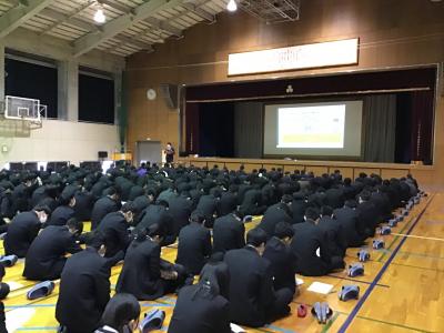 この春から、いよいよ成人になる3年生は講話を聴き、しっかりとメモを取っていました。