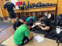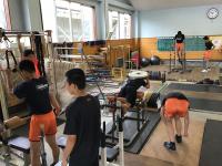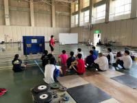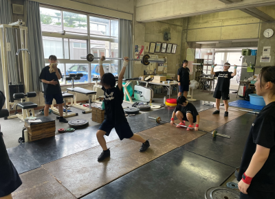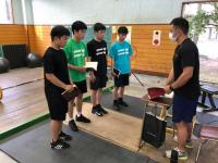 1年生5名は、ウエイトリフティングの基礎練習を行いました。基礎から改めて学び、非常に充実した様子でした。