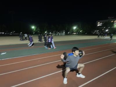 普段慣れないトレーニングに苦戦しながら、一生懸命に取り組みました。また、大人数でのトレーニングもとても良い刺激になりました。トレーニングの最後に、陸上部の投擲ブロックと重り押しダッシュも行いました。