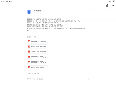 県選抜大会の試技を、各自のchromebookを用いてフォームの研究を行いました。
