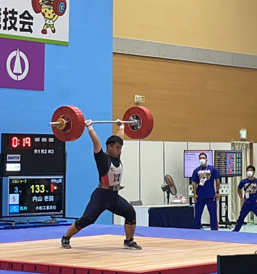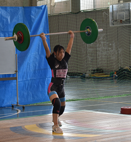 「想像以上に緊張してしまい、いつもの練習と同じようにという意識が薄れてしまっていた。アップで固いまま、スナッチの試技になり本番でも全然緊張が取れず、1本しか成功できなかった。スナッチで自分のリズムが成っていないと指摘してもらい自分でも納得したので、後半から自分のペースをしっかりと意識できた。そのあと、一気に緊張がほぐれジャークでは3本とも成功し自己新記録が取れた。落ち着いて行うとはこのことなんだと改めて実感できた。とても達成感があり、嬉しかった。」