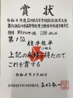 令和4年6月12日、いしかわ総合スポーツセンターで令和3年度西川・米沢スポーツ賞並びに石川県スポーツ協会優秀選手賞表彰式が開催され、本校少林寺拳法部の畠山聖護選手、池田俊汰選手、竹下こころ選手、碇山華加選手が授賞式に出席しました。「部活動」<「少林寺拳法部」のページはこちら。
