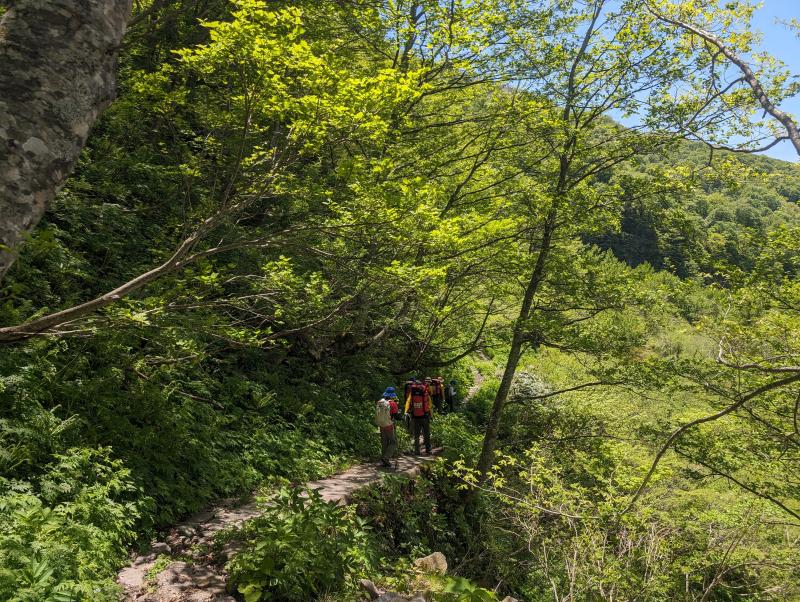 5月26日(金)、27(土)に、先週に続き総体の会場でもある白山登山を行いました。26日(金)15:00に市ノ瀬から別当出合までの規制が解除されたため、別当出合まで車で行くことができました。大会ルートでもある甚之助避難小屋の少し越したあたりまで行ってきました。
