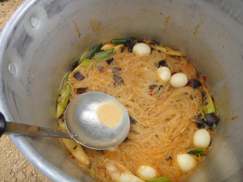 朝飯は昨日の鍋の出汁を使ったうどんです。