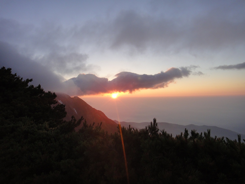 鹿島槍ヶ岳を目指す途中でご来光が。絶景だがこの後にも素晴らしい絶景がみられる。