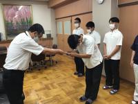 7月13日、校長室にてインターハイ出場選手に対する激励式がありました。島村校長先生の激励の言葉をうけて、生徒達のまなざしは一層強いものになりました。