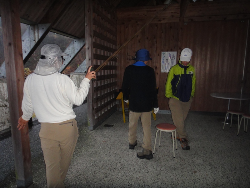 さっそくロープワークと登り方の訓練。落下するときは「落ちます」、