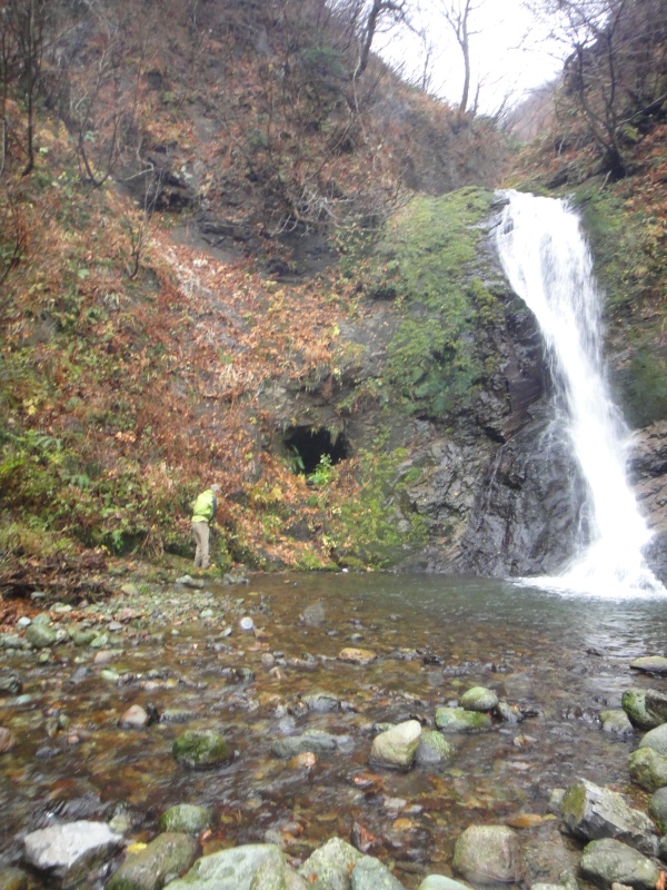 滝の横に穴があります。そこに何があるのか見に行こうとしているようです。