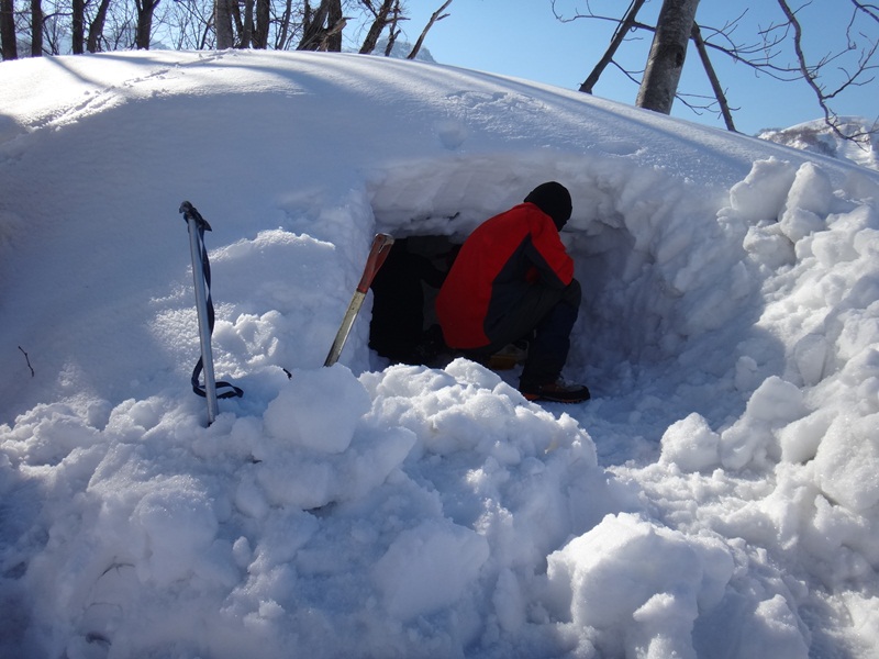 最後に一つ豆知識。円柱状に雪を掘ってその円柱を横から手で押すと雪崩の危険性があるかを確認できます。円柱は腕で囲める程度の大きさ、雪が氷のように固くなるまで深く掘り、横から押したときに崩れた分、雪が崩れるかもしれないということです。