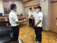 7月13日、校長室にてインターハイ出場選手に対する激励式がありました。島村校長先生の激励の言葉をうけて、生徒達のまなざしは一層強いものになりました。