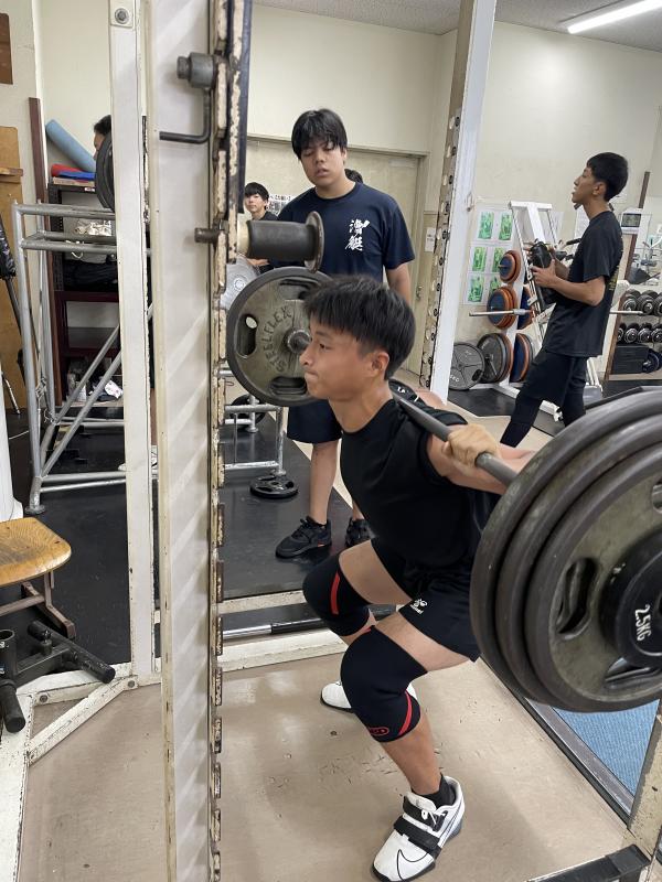 この夏は、全国的に猛暑が続いていますので、暑さ対策として冷房の効いた小松市総合体育館トレーニングルームで練習も定期的に行っています。こういった機会を利用して、追い込んだり、また普段できないようなトレーニングマシンで鍛えたりしています。また、公共の施設をマナー良く使用したり、一般利用されている方とコミュニケーションを取ったり、普段の学校の練習では体験できないことも勉強になっています。ウエイトリフティングをきっかけに生涯にわたって体を鍛えることも続けてほしいと思います。卒業後もウエイトリフティングやトレーニングを続けていく部員が一人でも多くなればと思います。筋トレ最高!!