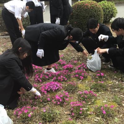 検定試験前で補習に行く部員が多く、活動する生徒が少なく心配していたのですが、他の部活の生徒たちが「部が休みだから手伝うよ」と言ってくれ、暑い中頑張って一緒に活動してくれました。
