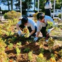 小松市の「花のまちづくり推進団体」として、本格的に本校正面玄関前の花壇づくりを始めました。