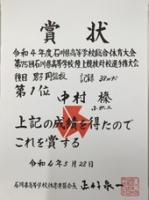 令和4年6月12日、いしかわ総合スポーツセンターで令和3年度西川・米沢スポーツ賞並びに石川県スポーツ協会優秀選手賞表彰式が開催され、本校少林寺拳法部の畠山聖護選手、池田俊汰選手、竹下こころ選手、碇山華加選手が授賞式に出席しました。「部活動」<「少林寺拳法部」のページはこちら。