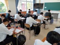 本校では、朝の8時35分から8時45分の10分間を「こま工タイム」と名づけ、朝の学習時間にしています。写真は、電気科の1年生が、計算技術検定に向けて学習に取り組んでいる様子です。