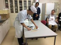 その後、小松商業高校で行松旭松堂さんを講師に迎え、和菓子作り体験を行いました。