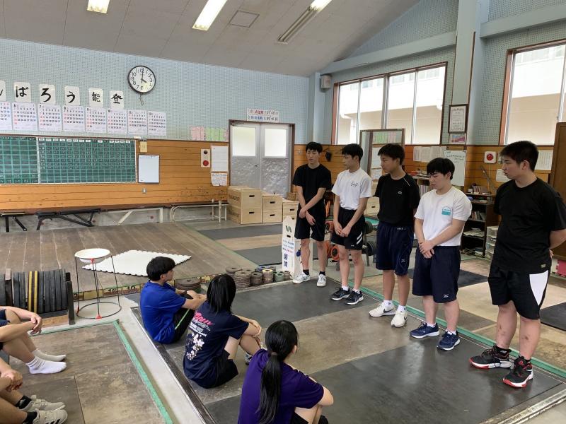 自己紹介ということで、新入生も2,3年生もウエイトリフティング部に入部したきっかけやエピソードを紹介してもらいました。